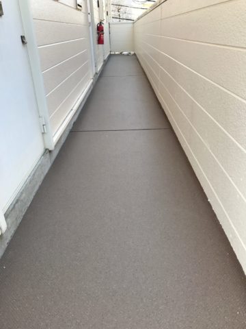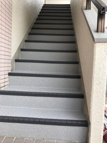 特に、アパートやマンションの廊下・バルコニー・階段にはぴったりな工事なのです。足元の安全性を守るならぜひご検討ください。